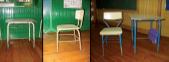 La estructura de estos muebles era de tubos de acero, mientras que para la tapa de la mesa, el asiento y el respaldo de