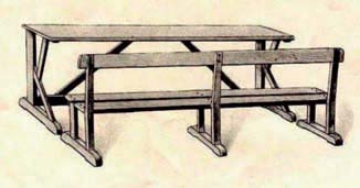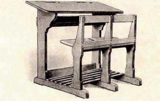 En la figura 2 se puede observar otro modelo de banco escolar de la misma época, pero con un diseño mucho más sencillo. No tiene rejilla para apoyar los pies ni estante para los libros, y el tablero es horizontal. Esta última característica no era habitual en una época en que casi la totalidad de los pupitres se fabricaban con el plano de trabajo inclinado (Bustamante, 2004).