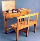 En la figura 3 se muestra un modelo de pupitre de la década de 1940, en la que se puede ver la escasa evolución que tuvo el mobiliario escolar en la primera mitad del siglo XX en España, si se compara éste con el de la figura 2, que data de los años veinte.