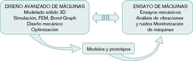 El área de Diseño de Máquinas es heredera de materias fundamentales como Cinemática y Dinámica de Máquinas y Cálculo, Construcción y Ensayo de Máquinas. Estas materias han evolucionado a otras con nueva denominación: Teoría de Máquinas y Mecanismos, Análisis y Síntesis de Mecanismos, Diseño de Máquinas I y II, Diseño Mecánico, Elementos Finitos y Vibraciones Mecánicas. Todas ellas parten de sus contenidos fundamentales programados para ir incorporando nuevas tecnologías y metodologías basadas en el análisis, cálculo y simulación por ordenador. Actualmente, la enorme evolución que han experimentado las tecnologías de la informática está haciendo viable en tiempo y costes la incorporación de tecnologías de prototipado y monitorización de las máquinas en el proceso de enseñanza-aprendizaje del diseño de las máquinas (Fidán, 2012; Forrester, 1969).