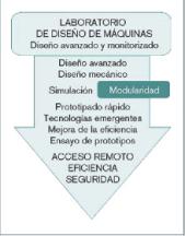 Por los motivos que se acaban de exponer, el laboratorio de Diseño Avanzado y Monitorización de Máquinas (DISAMM) es heredero del Laboratorio de Cinemática y Dinámica de Máquinas y nace con un objetivo claro de evolución hacia las nuevas tecnologías de diseño avanzado en ingeniería. Se apoya en las nuevas tecnologías de la información y comunicación y de la informática. Apuesta claramente por la innovación tecnológica y de la educación (Meadows, 1972; Morecroft, 2007). Se emplean nuevas tecnologías de diseño, cálculo y simulación por ordenador, aplicando metodologías basadas en elementos finitos y modelado de sólidos y sistemas mecánicos multicuerpo (Sterman, 2000; Schaffernicht, 2008). Se incorporan herramientas informáticas de acceso remoto y tecnologías de prototipado y monitorizado de máquinas de bajo coste. Y aplicando algoritmos de optimización, se consigue completar el ciclo del diseño, cálculo mecánico y ensayo de máquinas de forma sostenible y eficiente (Poli, R. et al, 2008; Senge, 1990).