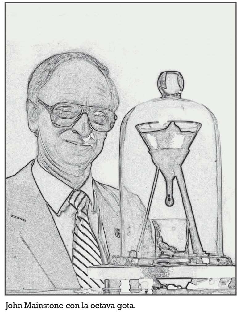 gota, en febrero de 1947, y tras su fallecimiento, al año siguiente, se hizo cargo del mantenimiento del ensayo su asistente de laboratorio, John Jennings, que anotó en el cuaderno de seguimiento la caída de la tercera gota, en abril de 1954.