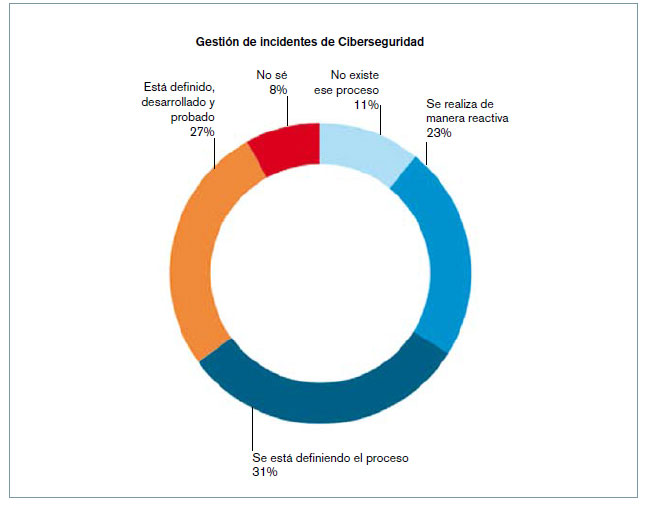 Por su parte, el citado informe del CCI revela que casi el 60% de las organizaciones analizadas están inmersas en la formalización de sus procesos de gestión e incidentes de ciberseguridad, o en muchos casos, incluso, ya los tienen establecidos. Sin embargo, todavía hay más de un 10% de organizaciones en las que no existe dicha gestión de los riesgos tecnológicos, o en las que solo se aplican medidas de forma reactiva, cuando ya han sufrido algún ataque cibernético.
