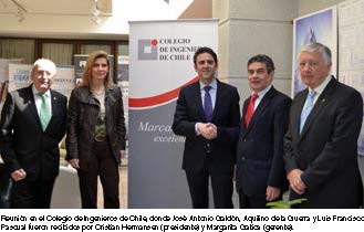 charla informativa a ingenieros y empresas españolas afincadas en Chile en la que les presentó el Cogiti y los Colegios Oficiales de Graduados en Ingeniería de la rama industrial e ingenieros técnicos industriales. Los asistentes a la charla se interesaron especialmente por los servicios que ofrecen, y a los que pueden optar si lo desean, como los indicados anteriormente. La charla informativa contó también con la participación de José María Castillero Guijarro, presidente de la Cámara y gerente general de Eurocalidad S.A., y Mª Cristina Montero, gerente general de la Cámara Oficial Española de Comercio de Chile A. G.