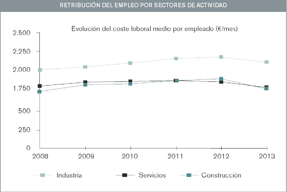 Otro dato esperanzador lo marca el empleo generado por las empresas industriales, ya que es de mayor calidad y más estable que el del resto de sectores. La retribución media de los empleos industriales es un 20% superior a la de otros sectores, siendo el coste laboral medio por empleado superior a los 2.000 euros mensuales desde el año 2008. En cuanto a la estabilidad laboral, dos tercios de los trabajadores industriales (67%) permanecen más de seis años en su empresa.