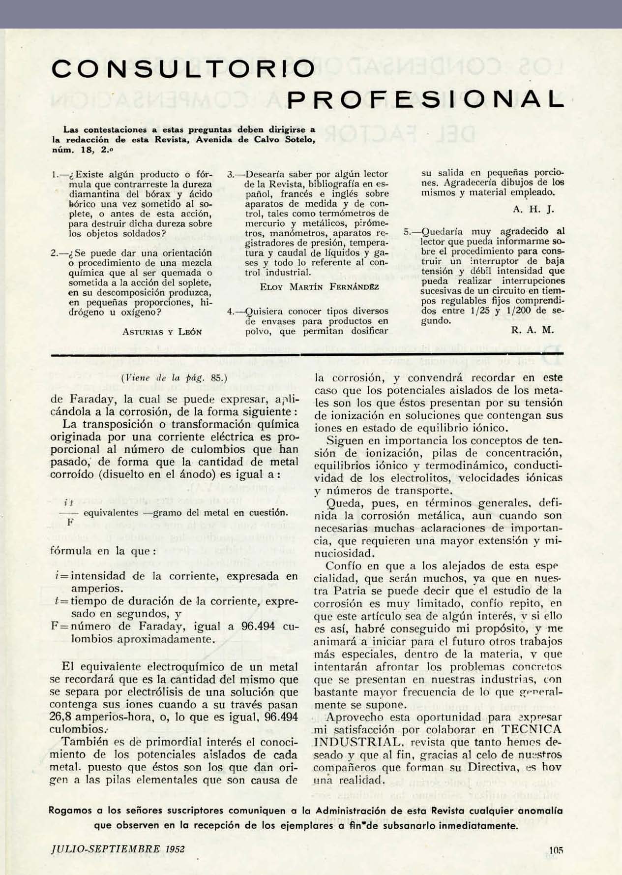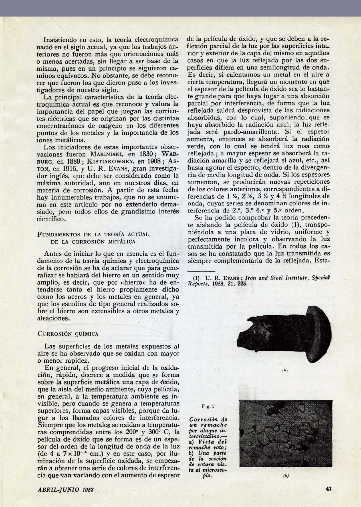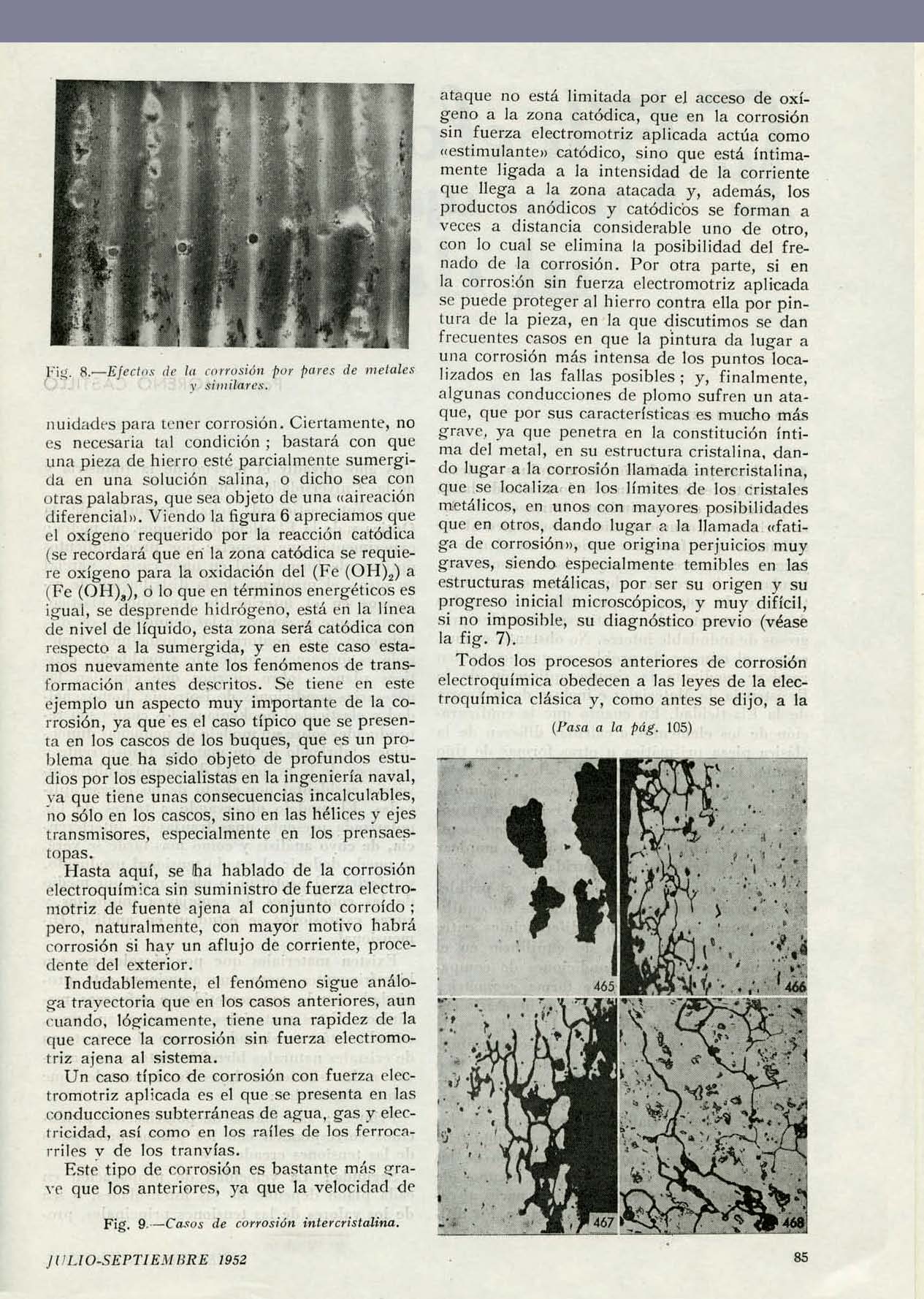 Para conmemorar el sexagésimo aniversario de Técnica Industrial, durante 2012 reproduciremos cuatro artículos publicados en 1952. Este segundo artículo es Corrosión metálica, de Ángel de la Fuente Martínez, perito industrial de los Institutos Nacionales de Técnica Aeronáutica Esteban Terradas y de Racionalización del Trabajo del Patronato Juan de la Cierva del CSIC, publicado en dos partes. El texto se acompaña de un comentario técnico de Gabriel Esteller Lores.