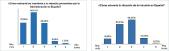 Otro bloque de preguntas hacía referencia a la situación de la economía, en general, y a su evolución, así como a las actuaciones llevadas a cabo por la Administración nacional, regional y europea en esta materia. En este sentido, más de la mitad de los encuestados, el 58,24%, califica de mala o muy mala la situación actual de la economía nacional, frente al 34,7% que la valora como aceptable, y el 6,85% como buena. Sin embargo, los encuestados prevén que la situación de la economía mejore notablemente en los próximos tres años; así lo consideran el 66,39% de los encuestados, y de ellos casi el 25% opina incluso que será buena o muy buena.