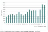 Las últimas estadísticas publicadas por la IFR recogen las ventas y el stock operativo de robots a finales del año 2012. En dicho año se vendieron en el mundo 159.346 robots industriales, lo cual supuso el segundo año en ventas tras el récord absoluto año anterior (sobre las 166.000 unidades). La figura 13 recoge la evolución de las ventas entre los años 1994 y 2012.