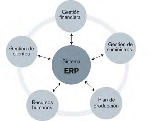 La funcionalidad de un sistema ERP es extensa, con módulos de software disponibles para cualquier área de la empresa que genere y utilice datos de negocio relacionados con la fabricación, el transporte y la distribución del producto. Cada proveedor ERP (Microsoft, SAP, Oracle, Infor, Epicor y otros) ofrece su propia idea de sistema estándar, pero hay módulos que aparecen en casi todas las soluciones (figura 2). Algunos de estos son los utilizados para la gestión: de la relación con el cliente (CRM), financiera (FM), de los recursos humanos (RR HH), del capital humano (HCM), del ciclo de vida del producto (PLM), de almacén y distribución, de pedidos, de activos, de inventario, etc.