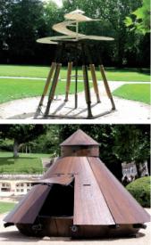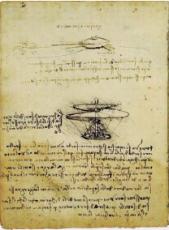 A escasos doscientos metros de la entrada al castillo de Clos Lucé, los niños giran y giran sin cesar la rueda del primer antepasado del helicóptero. Leonardo lo dibujó junto a otras máquinas voladoras pensando que un aparato en forma de tornillo podría elevarse verticalmente y volar si se hacía girar con rapidez. La fuerza necesaria para dar vueltas al dispositivo y mantenerlo en el aire era el principal obstáculo de este ingenio, que quedó sin desarrollar, lo mismo que otras muchas ideas del maestro. Los expertos explican que ésa era la forma que tenía Leo-nardo de afrontar problemas de tipo teórico, visualizando las soluciones posibles a través del diseño de máquinas que a menudo quedaban como ideas inacabadas. Por otro lado, es de destacar que fue la primera vez que la forma en espiral, omnipresente en el ámbito de los sistemas hidráulicos desde Arquímedes, se aplicaba al vuelo.