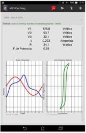 Un ejemplo de la conversión de banco de ensayos tradicional a SmartLab lo tenemos en el caso del SmartLab Magnetic (Fig. 2). Como se observa en la figura, la instrumentación tradicional basada en voltímetros y amperímetros de alterna se ha sustituido por sensores adaptados a una tarjeta de adquisición de datos comercial. Esta tarjeta se comunica vía Bluetooth con una tableta-PC o smartphone en el que una app específica disponible en Google Play (iSEE, 2015a) procesa las señales de tensión y corriente para mostrar sus valores eficaces, sus formas de onda y, lo que es más importante, el ciclo de trabajo equivalente del circuito magnético.