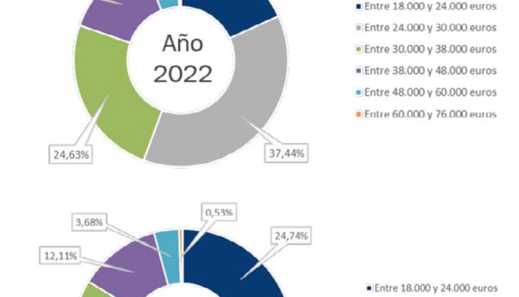 De ese modo, cabe destacar que, por primera vez, en 2022, el rango situado entre los 30.000€ y los 38.000€ se convierte en el segundo más ofrecido por parte de las empresas, mientras en los años anteriores, la segunda franja más habitual era la de 18.000- 24.000€.