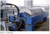 La centrífuga puede trabajar en continuo, siendo igualmente muy impor tante el empleo de un agente floculante o polielectrolito adecuado, a la entrada del rotor, para una mejor separación. En la deshidratación de estos fangos en las centrífugas, se pueden obtener unos lodos con una concentración en materia seca próxima al 20%.
