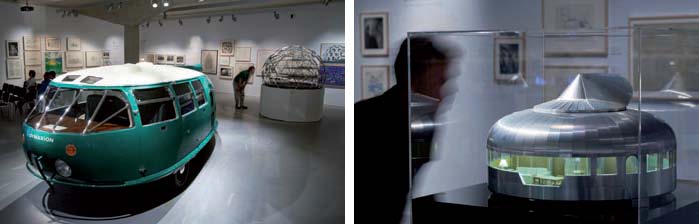 Bucky Fuller quiso ser el Henry Ford de la vivienda, construir casas como si fueran coches, en serie. Para ello, realizó varios diseños que nunca llegaron a construirse, si bien algunas de sus ideas se han ido integrando en el acervo arquitectónico. Todavía en nuestros días nos parece disparatada su idea de edificar torres de edificios livianos en torno a un eje central (la exposición muestra varios esquemas ilegibles para el profano) que, literalmente, permitiera clavarlas en tierra. Estas torres serían trasladables con dirigibles a cualquier lugar del planeta.