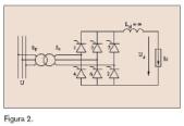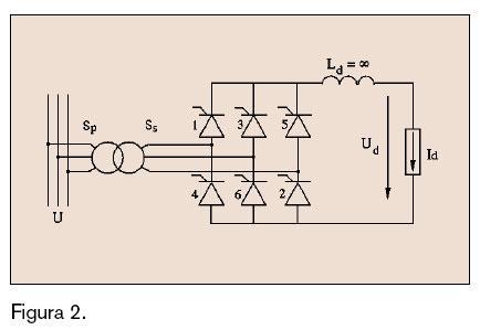 Los elementos perturbadores que generan este tipo de armónico en la industria son los rectificadores cargadores trifásicos, convertidores de corriente alterna a corriente continua, combinaciones de diodos y tiristores (figura 2).