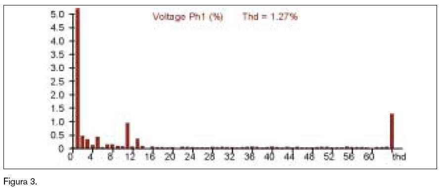La medida de los armónicos se realiza con equipos que analizan la señal y realizan un espectro de los distintos órdenes de armónicos (figura 3).