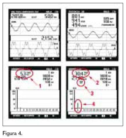 En la tercera gráfica se observa que hay una distorsión en la señal de tensión, no peligrosa pero preocupante (1). La tasa de distorsión armónica de tensión es intolerable por encima del 8 %, según norma EN 50160:1999, pero a partir del 5% se considera que hay que realizar las acciones necesarias para eliminarlos.