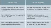 Para analizar el grado de mejora que se consiguió desarrollando un nuevo mode-lo, en la tabla 1 se pueden ver los resultados obtenidos mediante el modelo inicial y el mejorado. Para la obtención de estos valores, se aplicaron los modelos a los 650 locales anteriormente nombrados.