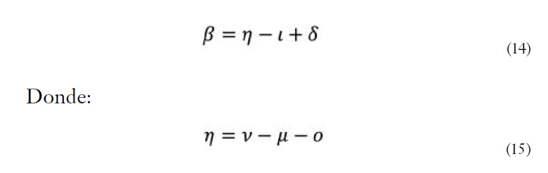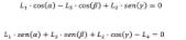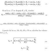 En las ec. (1) y (2) se posicionan los términos dependientes del ángulo a la derecha de ambas igualdades. Se eleva (1) y (2) al cuadrado y se suman entre sí. De la ecuación resultante se agrupan los términos L1, L2, L3 y L4 en tres contantes R1, R2 y R3 en la ec. (3), obteniendo una relación entre las incógnitas α y β