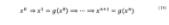 Puesto que el valor de x* se desconoce, se parte de un valor aleatorio de x. Utilizando este valor inicial aleatorio se calcula un nuevo valor de x a partir de la función g de la ec. ( 17 ).