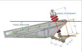 Siguiendo estas ecuaciones combinadas con la representación gráfica que hace de ellas SolidEdge se pueden ajustar los parámetros del conjunto de la suspensión hasta encontrar una geometría que cumpla las restricciones pertinentes, sea fabricable y no incurra en incongruencias físicas.