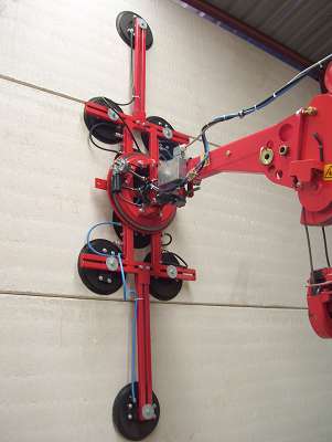 La empresa Spain-Crane International cuenta con toda una gama de minigrúas aptas para espacios reducidos. El modelo URW295 dispone con una ventosa especial que se acopla a la cabeza de la pluma, con la que se puede acristalar a cualquier inclinación, cogiendo el cristal desde cualquier posición, rotándolo y preparándolo con los tres movimientos diferentes de la ventosa (giro de 360º, inclinación de 90º con tornillo sin fin y vasculación lateral de 90º) mediante otro tornillo sin fin. Este equipo puede acristalar una cúpula completa desde dentro hacia arriba sin dificultades. La ventosa cuenta con doble circuito de seguridad y tanto el motor como los mandos de la ventosa se encuentran en el suelo, lo que permite al operario un control absoluto de la ventosa y de la minigrúa en todo momento. Otra ventaja más es que todos los movimientos se pueden controlar mediante radiocontrol. Se puede acristalar hasta
