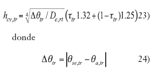 Si se observa la ecuación del coeficiente superficial externo de transmisión de calor (21), es función de si misma a través de la temperatura superficial externa (15) que se formula como: