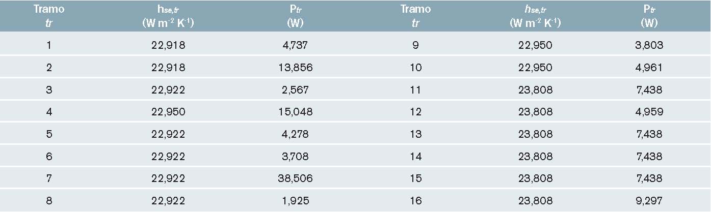 Las resistencias de convección internas por tramos se reflejan en la tabla 5.