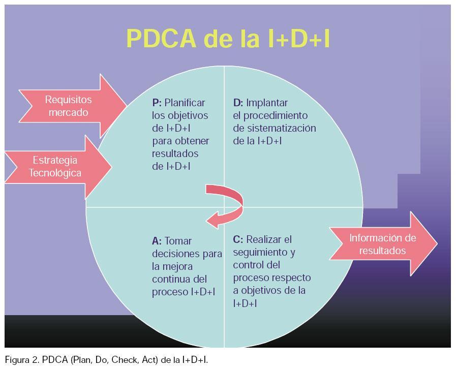 Primero, hay que pensar en un sistema de gestión de la I+D+I organizado según el ciclo de mejora de Deming: PDCA.