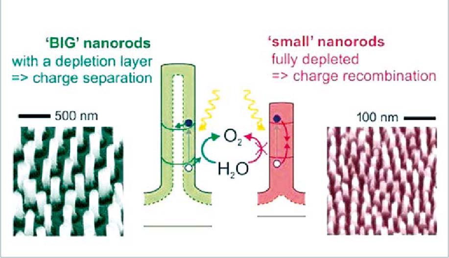 En particular, las estructuras de diámetro más grande tratadas en aire muestran un comportamiento excelente en la descomposición fotoelectroquímica del agua: un bajo potencial de inicio, una elevada fotocorriente generada y la ausencia de signos de fotocorrosión.