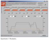 En esta pantalla se puede ver en tiempo real la curva de demanda. Se puede cambiar el tiempo de monitorización del eje de abscisas, en este caso de tiempos. Normalmente es conveniente poner un ancho de banda pequeño para poder apreciar mejor los detalles, para las pruebas se ha elegido 1 minuto. No obstante, los valores se almacenan para poder construir una curva de demanda donde aparezcan tiempos de muestreo de 24 h, 7 días, 1 mes, etc. Cabe decir que simultáneamente a la curva de demanda se puede ver en tiempo real la curva de generación y la resultante de ambas.