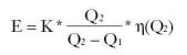K: Constante que depende de parámetros como volumen, etc. Q2: Caudal de alimentación a la turbina.