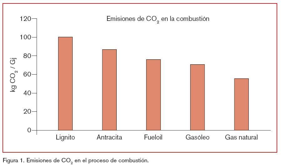 Como cualquier otro combustible, la combustión de gas natural produce CO2. Sin embargo, debido a la elevada relación hidrógeno-carbono de sus moléculas, sus emisiones son de un 40 a un 50% menores de las del carbón y de un 25 a un 30% menores de las del fueloil.