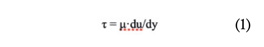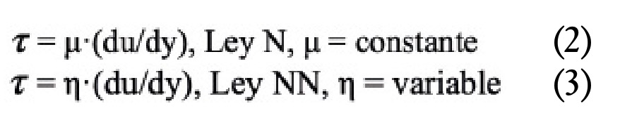 La tensión cortante τ (N/m2) experimentada por un fluido al circular por un conducto se puede representar mediante la ecuación (1) que constituye la Ley de Newton de la viscosidad.