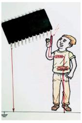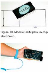 Un chip utilizado en electrónica, como el mostrado en la figura 10, sufre su destrucción cuando se le aplica una energía electrostática de aproximada-mente 5 μWs.