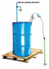 En particular se deben seguir normas de puesta a tierra en aquellos trabajos que supongan un contacto con líquidos inflamables, como puedan ser el llenado de depósitos o bidones. En ellos todos los elementos susceptibles de cargarse electrostáticamente y por ende de sufrir fenómenos ESD deben estar convenientemente puestos a potencial de tierra como muestran las figuras 11 y 12 respectivamente.