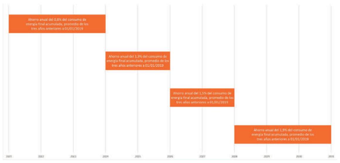 Figura 2. Hitos de la obligación de ahorro acumulado de uso final de energía.