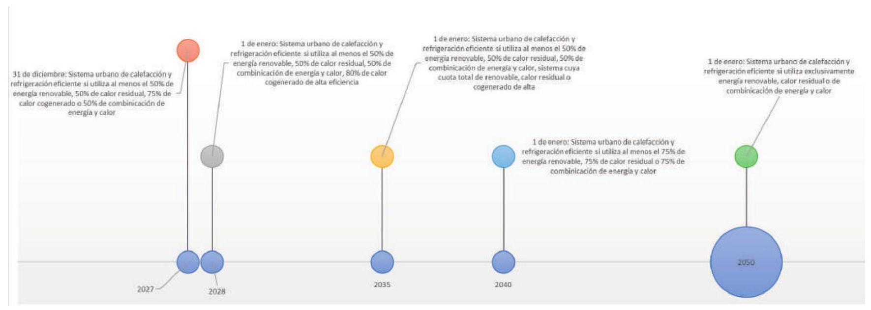 Figura 4. Hitos para considerar eficiente un sistema urbano para suministro de calefacción y refrigeración.