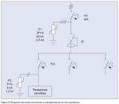 – Protector 2: Lo más cerca posible al equipo a proteger deberá colocarse un descargador fino (In = 5 kA, Imax = 8 kA, Uc = 440 / 275 V, Up= 0,5 a 1,5 kV), en modo común, diferencial o mejor mixto.