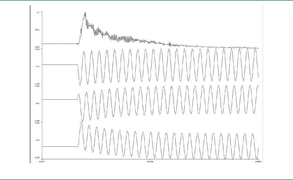 Hay que indicar que en los primeros instantes el arco interno es un fenómeno prácticamente adiabático, generando una sobrepresión similar a un golpe de ariete. Según nuestra experiencia, la presión del aire en el interior del equipo puede elevarse a 2,1 bar (relativos) en 30 ms. Ningún sistema de protección (con excepción de los fusibles) situado en las redes de distribución es capaz de eliminar la falta en tan corto espacio de tiempo, por lo que la envolvente debe ser capaz de soportarlo (figura 4).