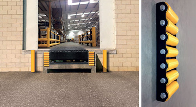 La empresa A-Safe dispone sistemas de barreras de seguridad innovadores basados en polímeros. A diferencia del acero, que se abolla o deforma al ser golpeado por un vehículo, las barreras A-Safe recuperan su forma inicial de inmediato. Gracias a su construcción modular, los productos A-Safe son muy adaptables y fáciles de instalar: no precisan ni tornillos ni soldaduras. El ahorro a largo plazo debido a los menores costes de mantenimiento y sustitución compensan con creces el desembolso inicial. Uno de estos protectores está especialmente diseñado para muelles de carga. El Dock roller cuenta con una serie de rodamientos fabricados en su parte externa con polímeros de alta resistencia y una capa para absorción de impactos en su interior.