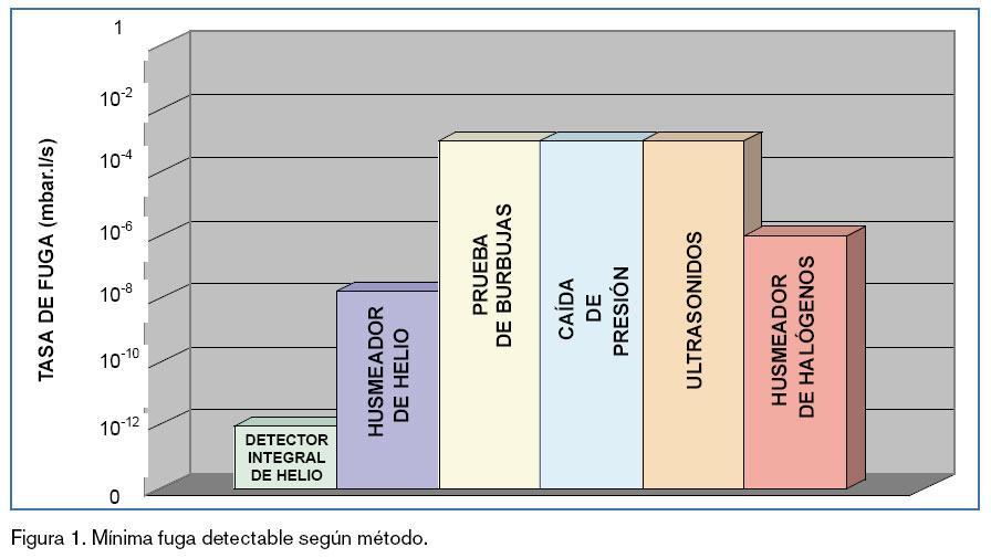 Para evitar este problema podíamos recurrir a la tecnología de la detección de fugas por helio entre otros sistemas como, por ejemplo, líquidos penetrantes, caída de presión, ultrasonidos o husmeación de halógenos, de cuya comparación ilustra la figura 1.
