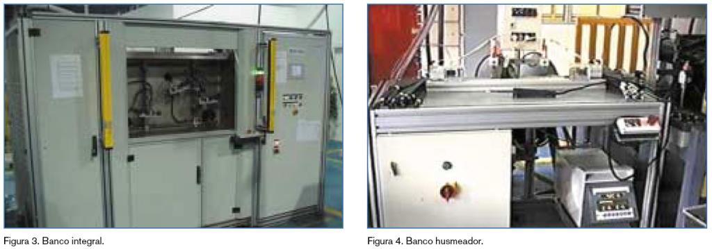 Alcanzada la presión de prueba, el control abre el flujo de gas de cada cámara hacia el espectrómetro, con el apoyo de una bomba de vacío externa a éste. A través de un distribuidor de válvulas se analiza cada cámara durante tres segundos. Si el espectrómetro detecta fuga, emite señal acústica y luminosa de color rojo, identifica dónde se ha localizado la fuga y finaliza el proceso de modo idéntico al anterior. Caso de no detectar fuga, emite señal luminosa de color verde. Cuando el proceso está completamente finalizado, el banco libera la pieza para su marcaje y clasificación posterior, quedando listo para una nueva prueba.