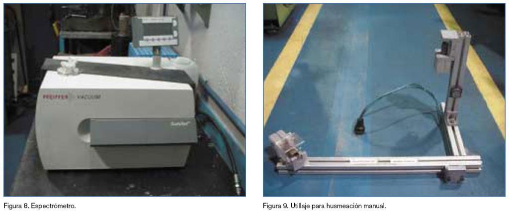 Todo el conjunto es capaz de detectar cualquier gas si se sintoniza para ello. En nuestra aplicación, lo más razonable es elegir un aparato optimizado para la detección exclusivamente de helio, posibilitando así medir rangos de fuga verdaderamente pequeños, hasta el punto de ser el método más sensible que se conoce. Baste como detalle indicar que podría medir valores del orden de 10-12 mbar.l/s, es decir, mil millones de veces más pequeños de lo que podíamos medir con el método de burbuja.