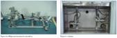Esta máquina resulta algo más cara que la anterior, al añadir un segundo circuito de canalización hacia el espectrómetro ajeno al husmeador propio que incorpora. El ciclo es idéntico. La única variación se produce al efectuar la husmeación. En este caso, al dar el operador la señal de inicio de ciclo, a la par que se efectúa la conexión de la pieza al circuito, las cámaras de aislamiento del volumen de control encierran las partes críticas. Se inicia el vacío previo para proseguir con la presurización con helio a 10 bar o a 40 bar (en este caso el banco alberga el utillaje en una urna de policarbonato y perfil de aluminio de manera que es imposible la presurización de las piezas si esta urna no está cerrada, salvo para valores de presión inferiores a 10 bar).