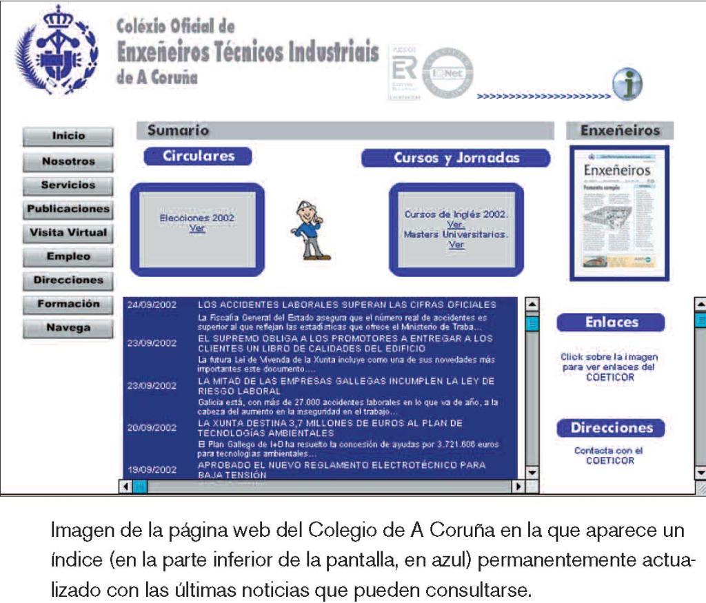 En la portada de la nueva entrega del boletín “Enxeñeiros” (el número 10 de junio a septiembre de 2002) se hace una amplia referencia al primer proyecto de Código Técnico de la Edificación (CTE), que el Ministerio de Fomento ha sometido a exposición pública. Coeticor alaba que el citado departamento ministerial haya sacado adelante este documento aunque para ello haya agotado el período temporal que establece la Ley de Ordenación de la Edificación (LOE). Los representantes de la entidad colegial estudian las 1.700 páginas del texto, de gran trascendencia para los ingenieros técnicos industriales.
