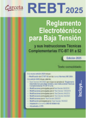 Esta edición 2025 del REBT incluye las modificaciones y actualizaciones consolidas, publicadas anteriormente, así como la última modificación publicada en el BOE: Modificación de la ICT-BT 02 con las nuevas Normas UNE actualizadas según Resolución de 20 de marzo de 2025, de la Dirección General de Estrategia Industrial y de la Pequeña y Mediana Empresa; además del Real Decreto 842/2002, y las últimas modificaciones de reales decreto. Asimismo, se incluye el siguiente material adicional: Adaptación a la norma UNE HD 60364- 5-52: 2014. Instalaciones eléctricas de baja tensión. Canalizaciones; Adaptación al CPR sobre la posible reacción al fuego de los cables eléctricos, y una relación de las Normas UNE citadas en cada Instrucción.