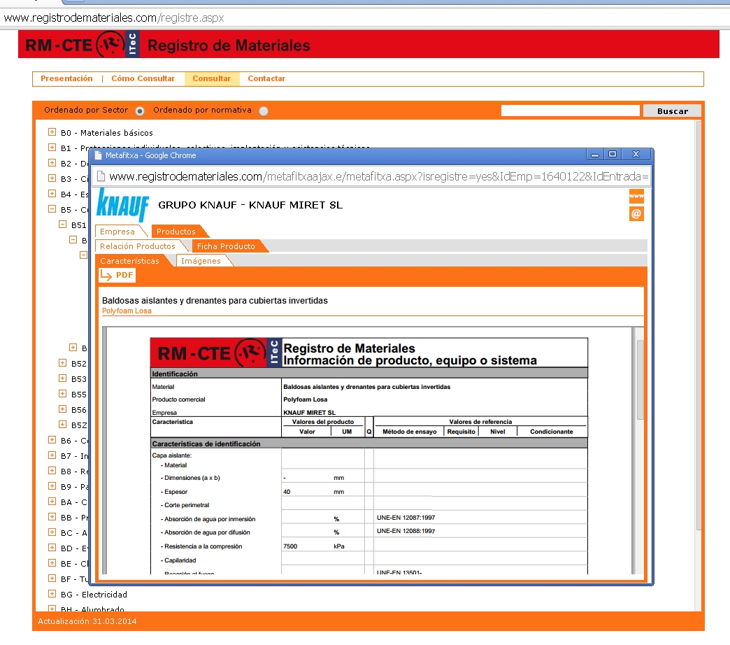 El Instituto de Tecnología de la Construcción de Cataluña ( ITeC) dispone, y por lo tanto ofrece a las empresas del sector, la web del Registro de Materiales donde se cumplen las determinaciones de este Reglamento delegado. El Registro ITeC de Materiales es un documento reconocido del Código Técnico de la Edificación que contiene productos, equipos y sistemas del ámbito de la construcción con información de los valores de sus características técnicas.