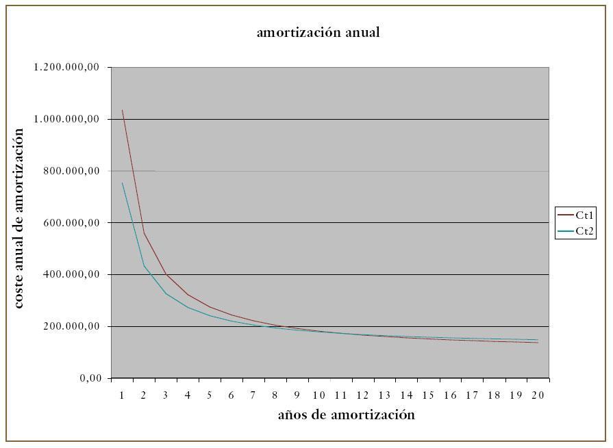En el ejemplo anterior, se pudo comprobar cual de las dos instalaciones era más rentable partiendo de una estimación de interés anual. El problema que se nos plantea resulta más complejo, ya que se trata de determinar la instalación más rentable partiendo de unas necesidades iniciales y de unos años de previsión de amortización.