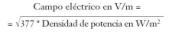 Si en lugar de utilizar la intensidad de campo en V/m quisiéramos hablar de densidad de potencia en W/m2, sólo tendríamos que considerar la relación: